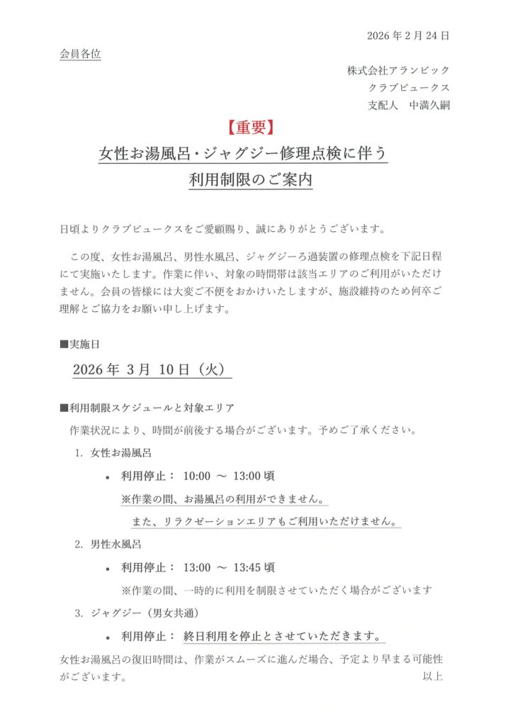 設備について | 2026.02.24